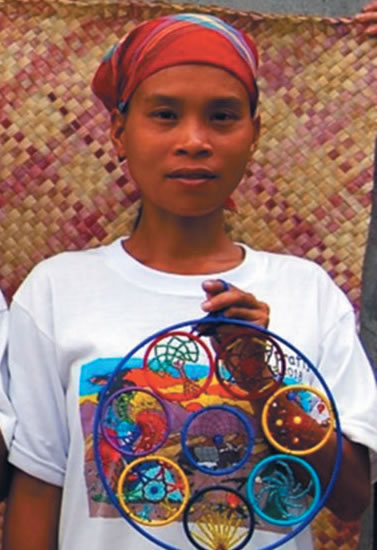 One day, twenty-three years ago, Andonie and her three companions hiked many hours from their remote hillside homes to get to the site of our first Mandala-crafting workshop in the town of Midsalip. It was there, during our first crafting session, that I noticed a smiling Andonie squatting in front of an electric fan. It was the first time she had seen a device that could create the wind.