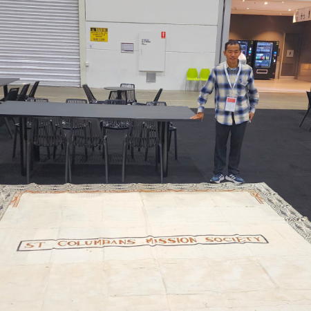 The masi printing sessions offered a unique experience for young pilgrims to express spiritual messages of Catholic solidarity and hope, while providing them with an opportunity to participate in creating a masi cloth which the Columban Partnership and JPIC program will use in their activities over the coming years.