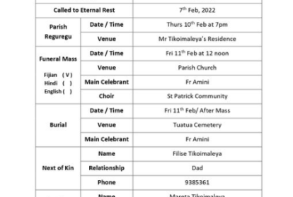 Vigil Mass for the late Fr Joseva Tuimavle CM